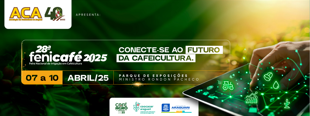 Organizada pela Associação dos Cafeicultores de Araguari (ACA), com apoio da Embrapa Café e da Prefeitura Municipal, a Fenicafé promete reunir produtores, especialistas, empresários e autoridades em torno de um tema que vem ganhando cada vez mais relevância: a irrigação como aliada contra os desafios do clima. “A Fenicafé é a principal feira de irrigação do Brasil. Essa tecnologia se tornou vital para a produção de café diante das mudanças climáticas”, reforça Gláucio de Castro, presidente da Federação dos Cafeicultores do Cerrado, que participará da cerimônia de abertura no dia 7.