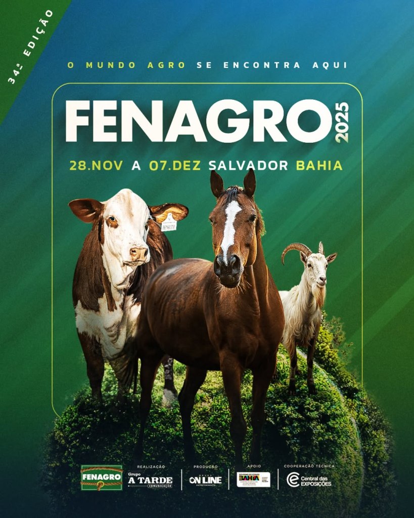 A contagem regressiva começou: a 34ª edição da Fenagro está chegando e promete sacudir Salvador entre 28 de novembro e 7 de dezembro. A maior feira agropecuária do Norte e Nordeste volta com força total, reunindo criadores, produtores, associações e representantes do governo em um encontro que leva o campo para o coração da cidade.